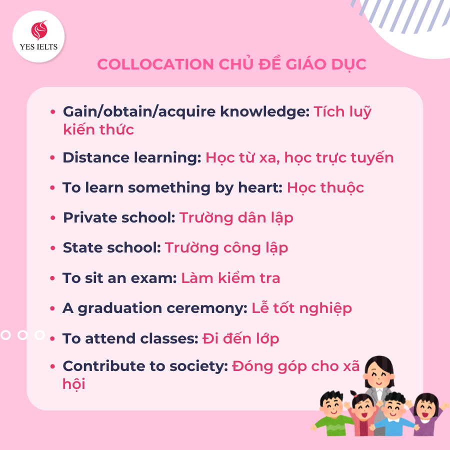 💞Chuyên mục học Collocations cùng YES IELTS đã quay trở lại rồi đây! Nhưng với bài viết lần này, sĩ tử sẽ được ôn tập lại từ vựng theo đa dạng chủ đề chứ không chỉ riêng một topic bất kỳ.🍭