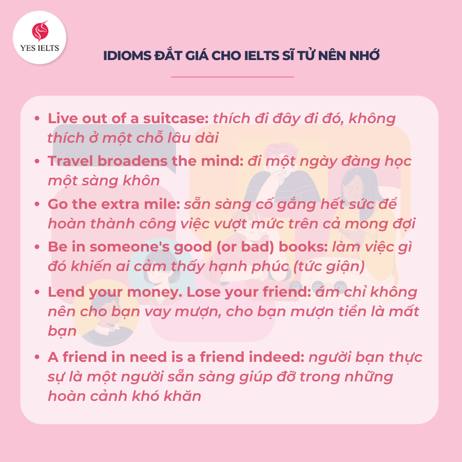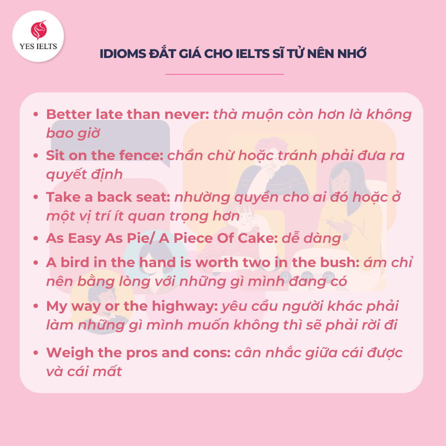 🌻Đừng lo sĩ tử ơi, việc gì khó có YES IELTS đây. Ở bài viết này, cô Ý đã tổng hợp lại rất nhiều những idioms ăn điểm giúp sĩ tử đạt band cao dễ dàng. Cùng lưu lại và học ngay nhé!💥