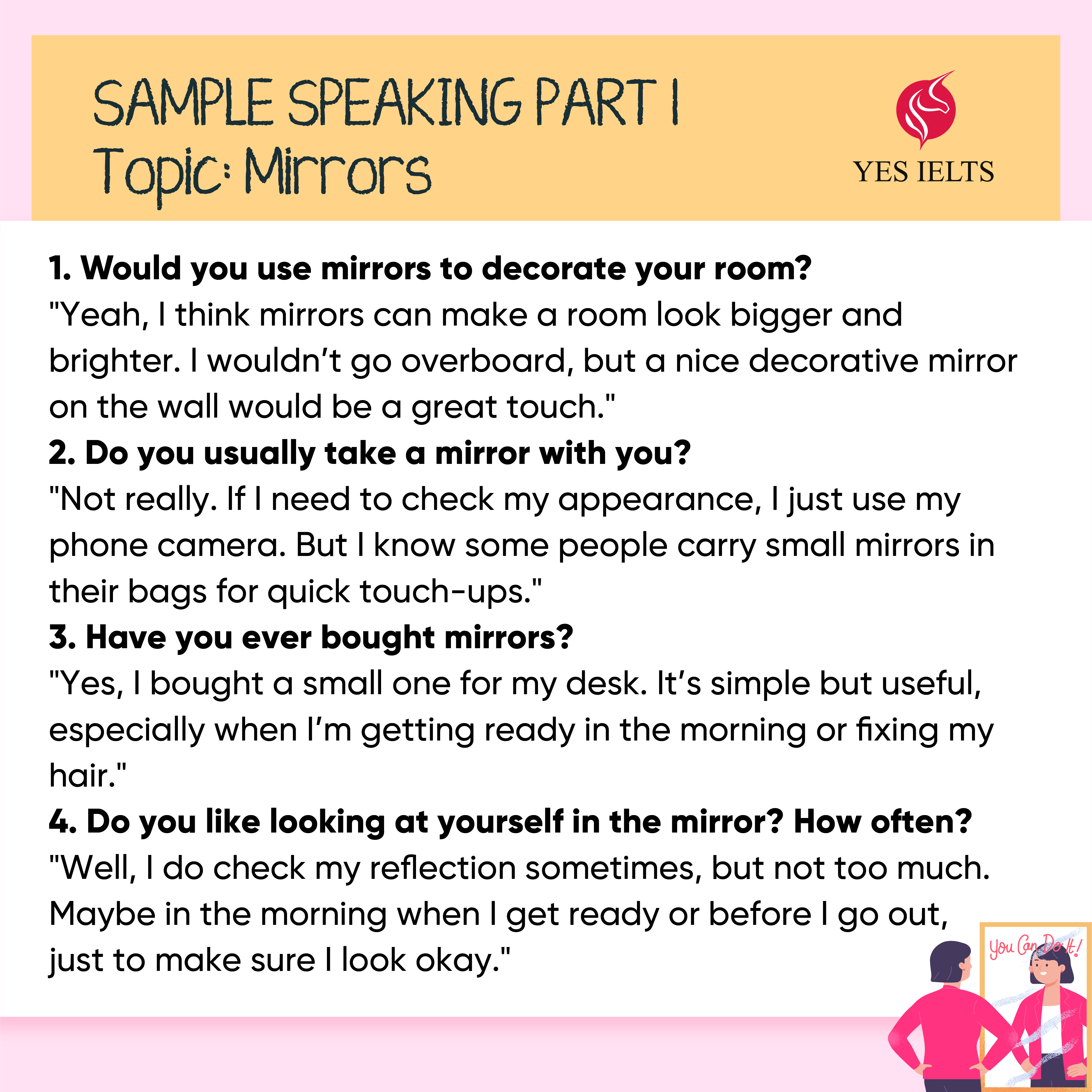 IELTS Speaking, Tài liệu dành cho học viên, Tài liệu luyện thi, Tài liệu miễn phí, Từ VựngSAMPLE SPEAKING PART 1 NHIỀU CHỦ ĐỀ (FORECAST QUÝ 1/2025) Đăng lúc 18 Tháng 3, 202513 Tháng 10, 2025 bởi Admin 18 Th3 Muốn trả lời trôi chảy tự tin trước mặt giám khảo trong phòng thi thì nhất định không thể bỏ qua bước luyện tập với bộ đề Speaking mới nhất Các sĩ tử xem qua bài mẫu để luyện tập áp dụng phù hợp vào bài thi của mình nhé 💥 CÓ thể bạn quan tâm! GIẢI ĐỀ THI THẬT IELTS SPEAKING NGÀY 24/04/2025 29 Tháng 4, 2025 50 TỪ VỰNG ĐƯỢC SỬ DỤNG NHIỀU NHẤT TRONG IELTS 14 Tháng 4, 2025 50+ CỤM PARAPHRASE ĐIỂN HÌNH TRONG SPEAKING 12 Tháng 4, 2025 BỎ TÚI NGAY 50+ CẶP TỪ ĐỒNG NGHĨA MÀ DÂN IELTS NHẤT ĐỊNH PHẢI BIẾT 11 Tháng 4, 2025 TRỌN BỘ TỪ VỰNG IELTS BAND 8.0 CHỦ ĐỀ “BUSINESS & MONEY” 10 Tháng 4, 2025 TỔNG HỢP TỪ VỰNG IELTS CỦA CÁC CHỦ ĐỀ QUEN THUỘC 8 Tháng 4, 2025 SAMPLE SPEAKING PART 1 & COLLOCATIONS – CHỦ ĐỀ “MAKE PLAN & PLAN MANAGEMENT” 7 Tháng 4, 2025 TỔNG HỢP TỪ VỰNG IELTS LISTENING THEO CHỦ ĐỀ 4 Tháng 4, 2025 Nhận xét bài viết!