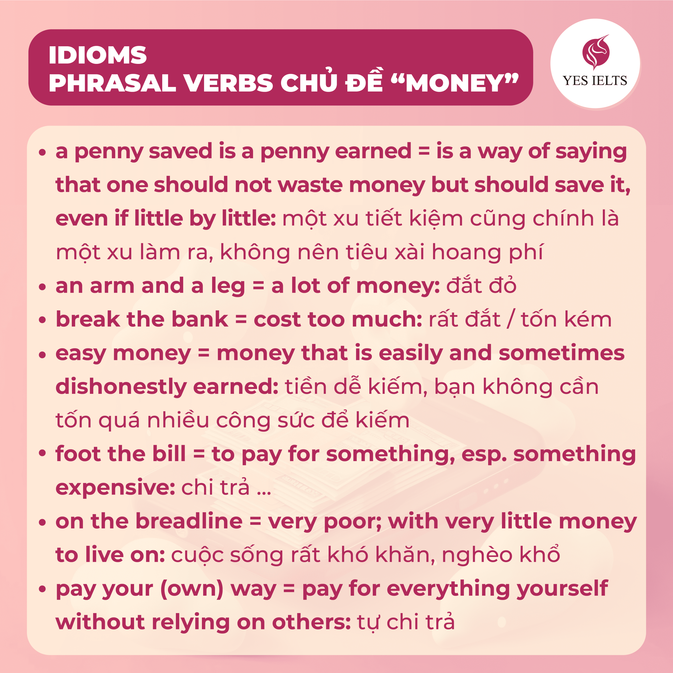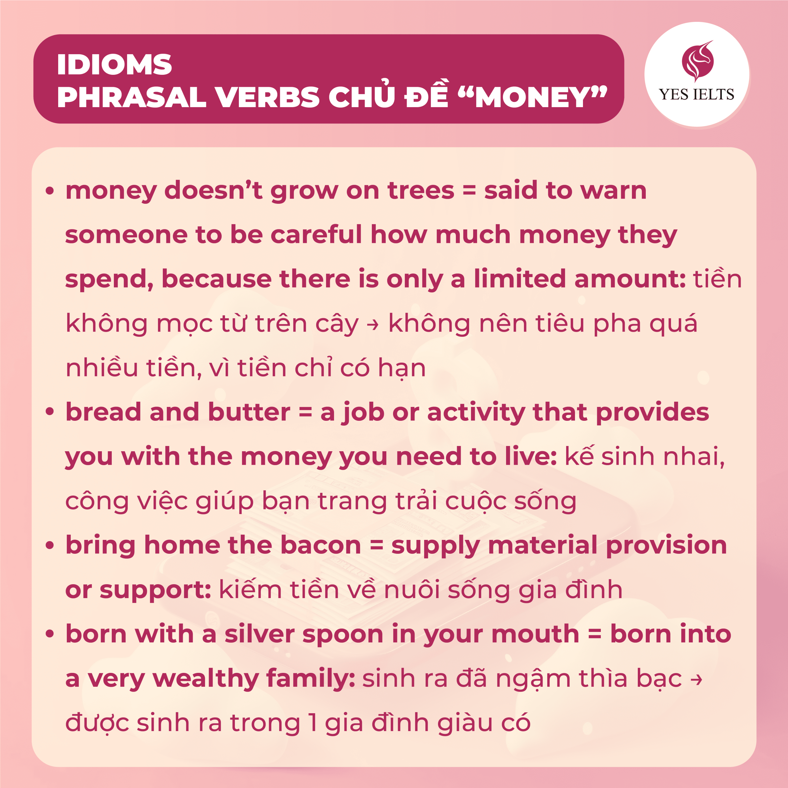 Tiền không mua được tất cả… nhưng trong IELTS thì từ vựng về tiền chắc chắn sẽ mua được điểm Lexical Resource cực cao nếu bạn dùng đúng! 😎💬
