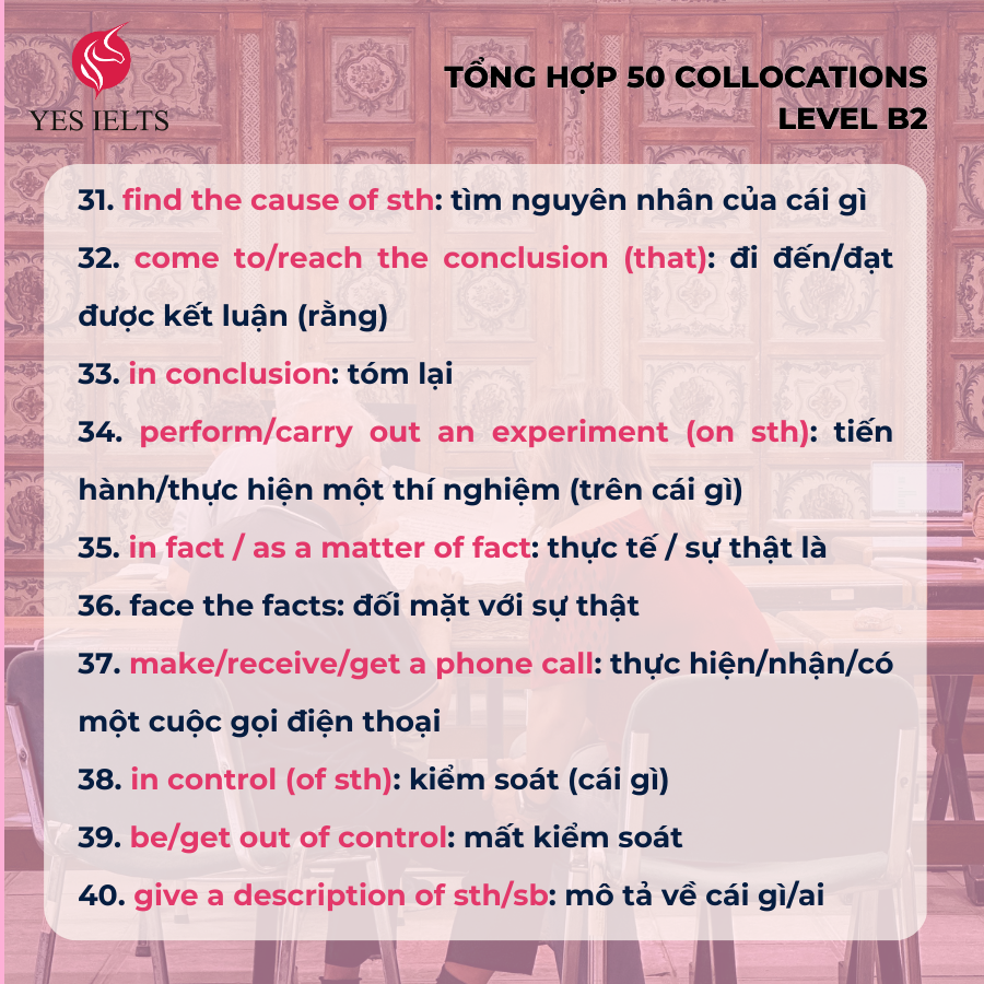 TỔNG HỢP 70 COLLOCATIONS TRÌNH ĐỘ B2