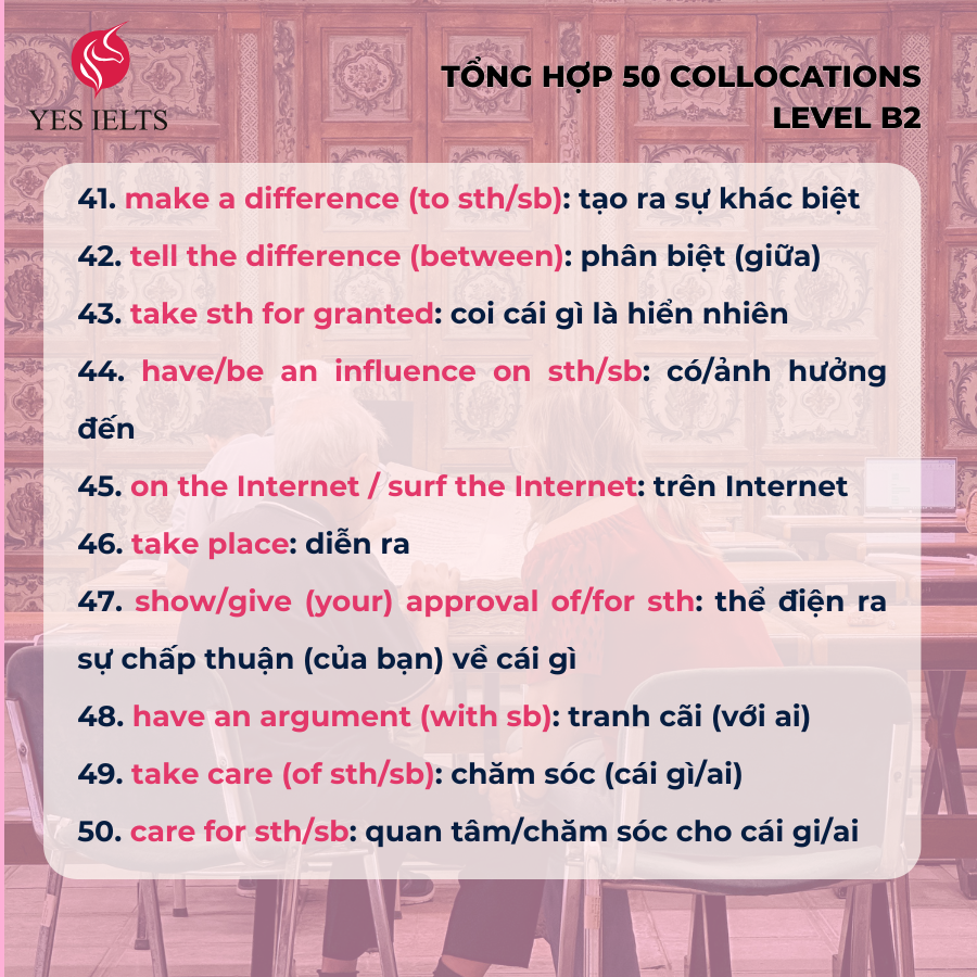 Trong bài viết này, cô Ý đã tổng hợp 50 collocations thông dụng ở mức B2 giúp bạn vận dụng hiệu quả trong giao tiếp hằng ngày và quá trình học tập 📚🚀.