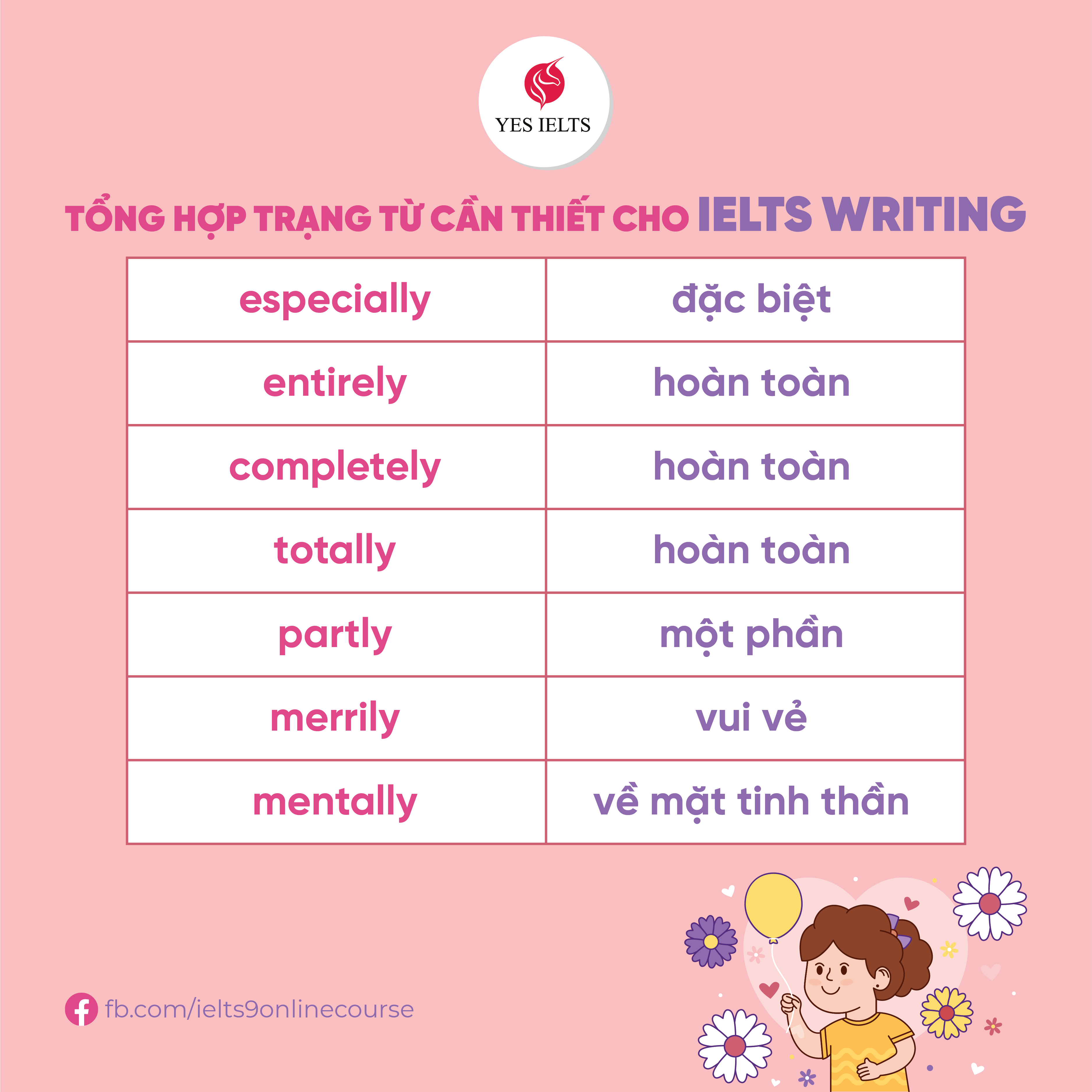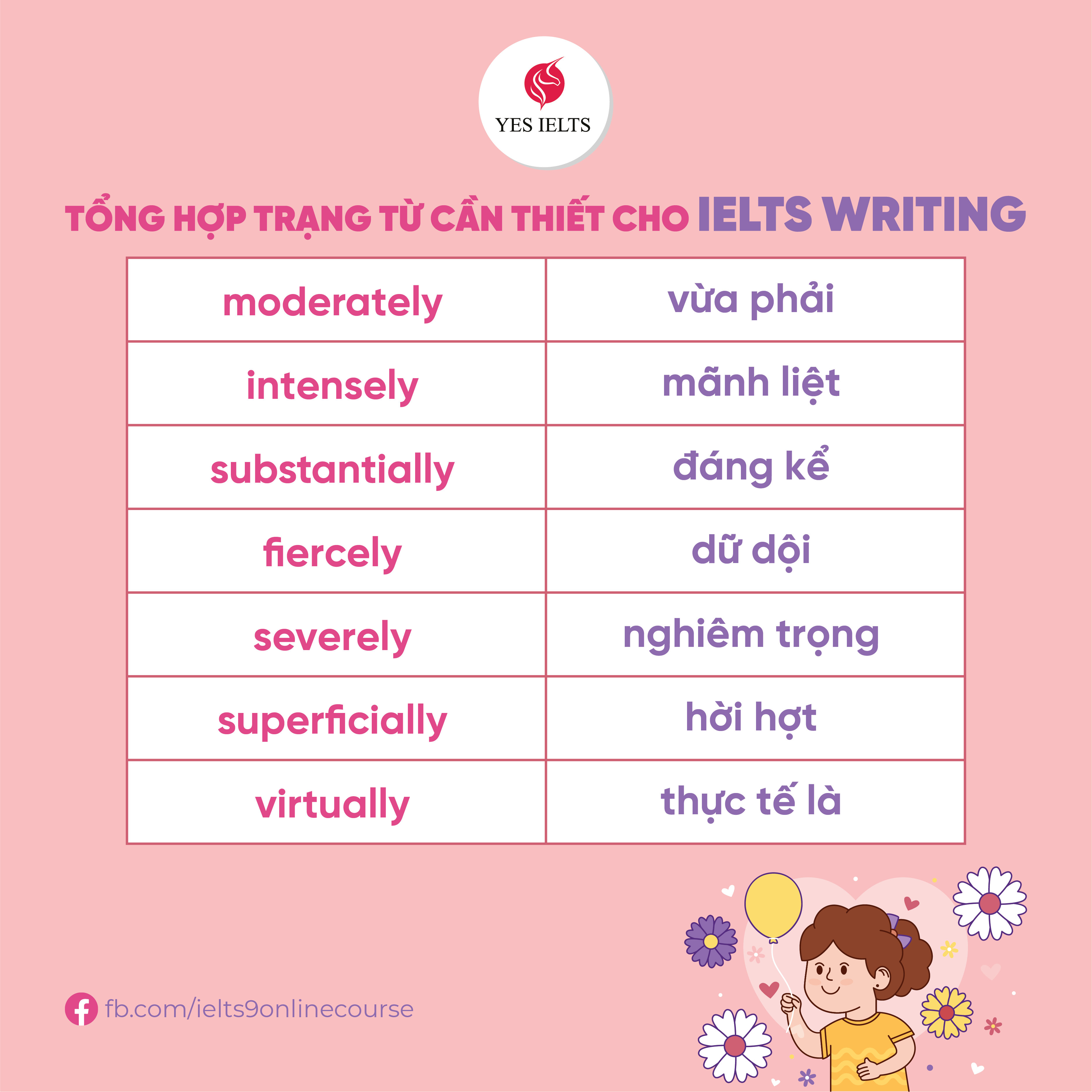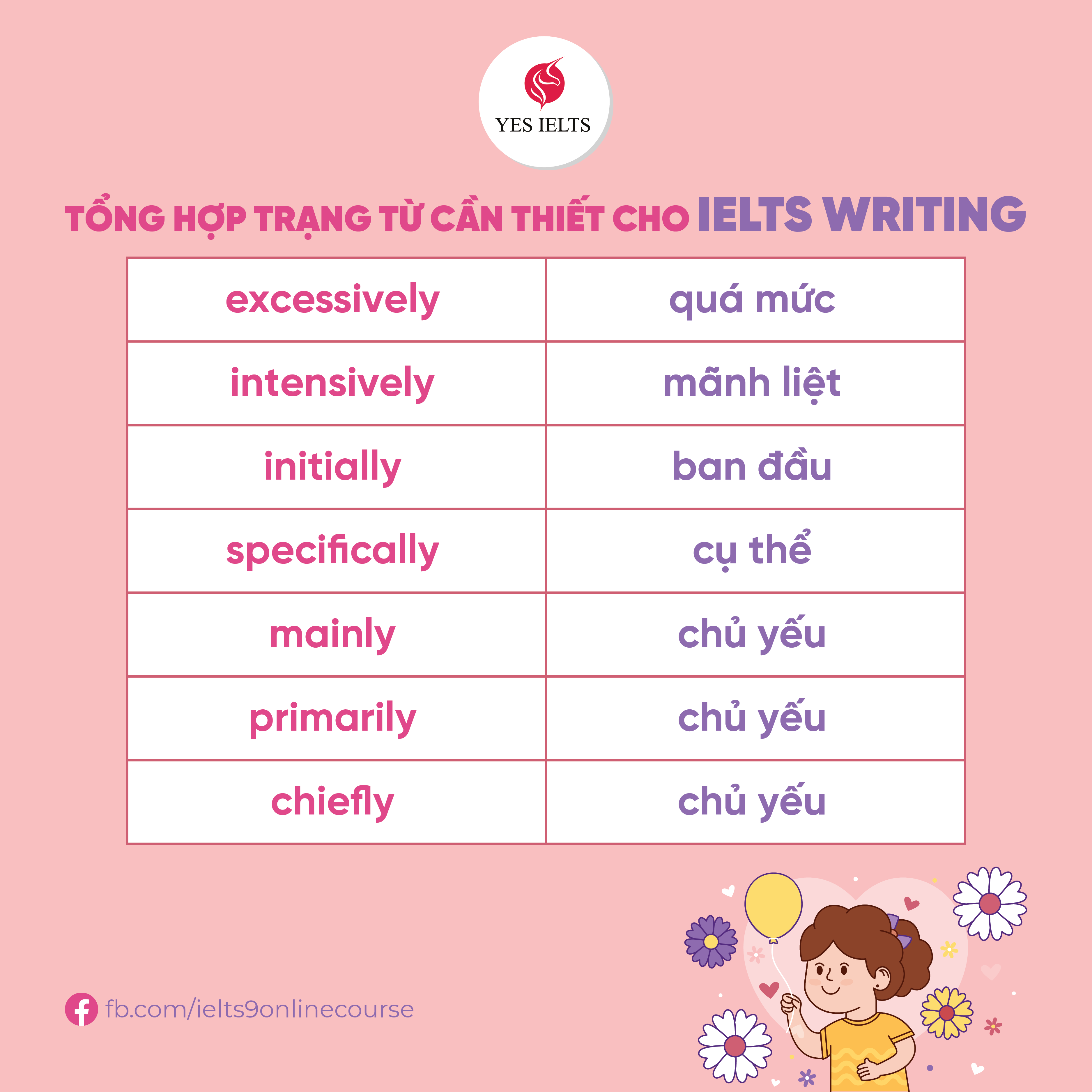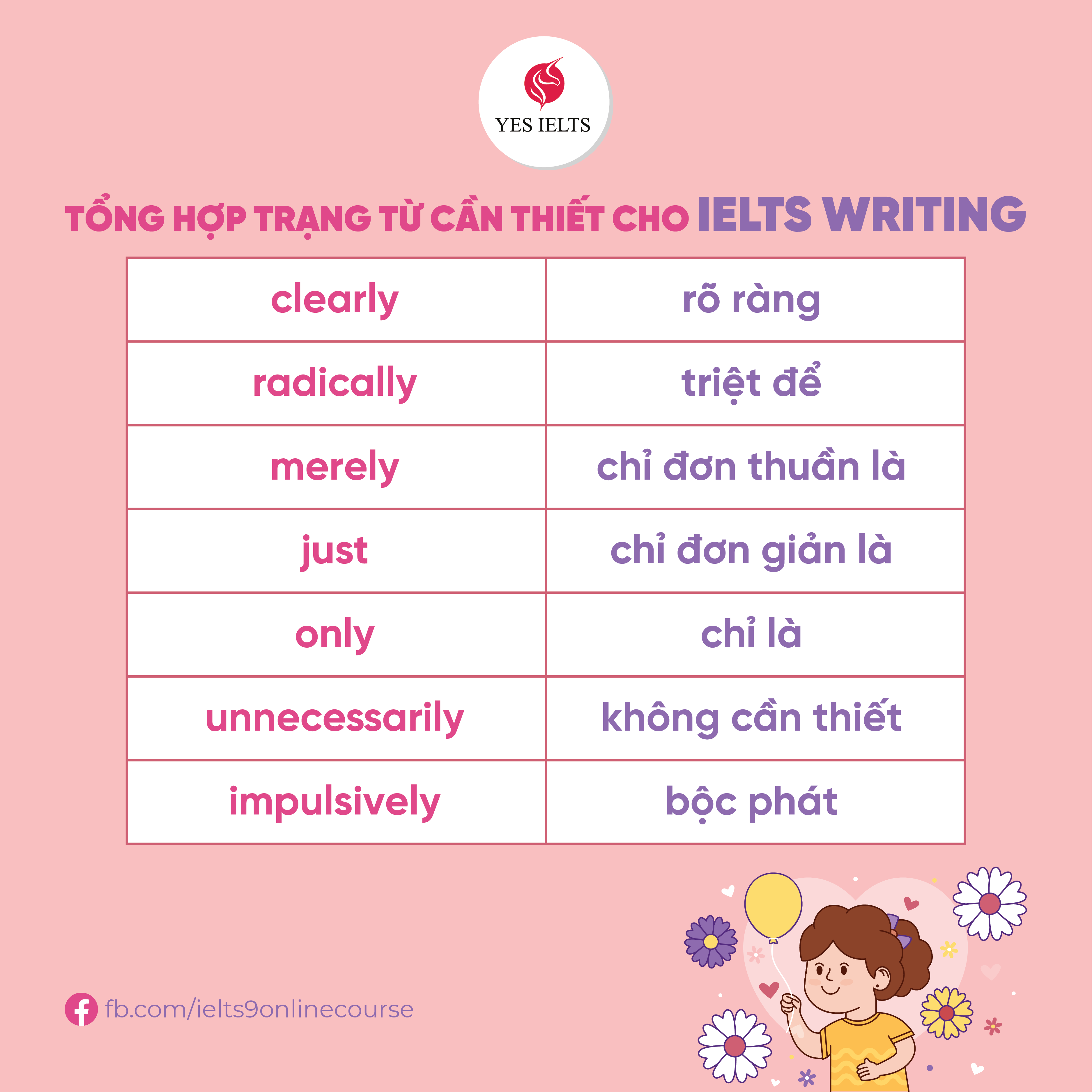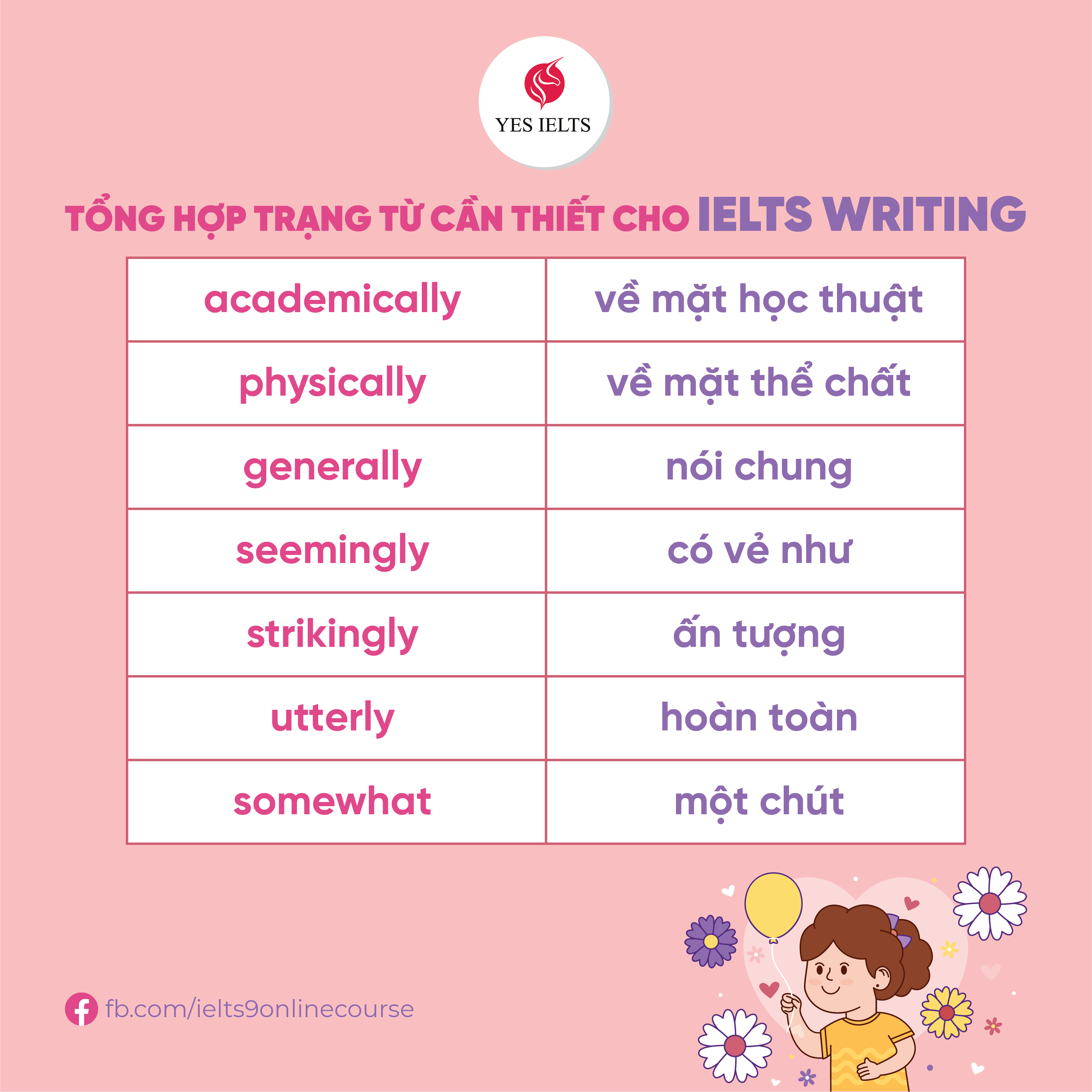Cô Ý đã tổng hợp các Trạng từ quan trọng cần thiết cho IELTS Writing giúp bạn dễ dàng chọn lọc áp dụng vào bài thi của mình. Cùng lưu lại và học ngay thôi nào 💓
